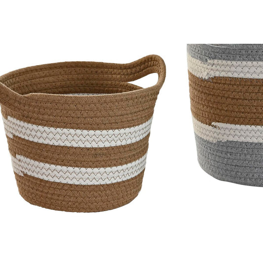 Korgset DKD Home Decor Stripes Grå Bomull (40 x 30 x 23 cm) (2 Styck)