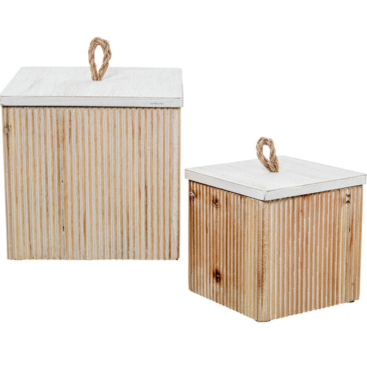 Set med dekorativa lådor Alexandra House Living Vit Brunt trä 2 delar